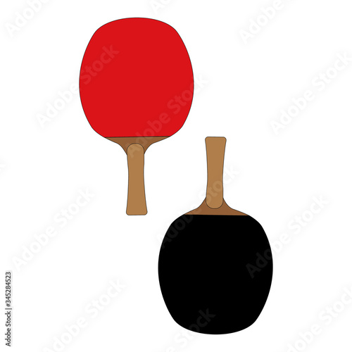 Two rackets for playing table tennis. Red and black isolated on a white background.