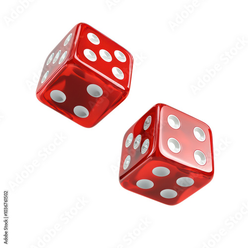 Two red dice displaying different values on a white isolated background. isolated on transparent background.