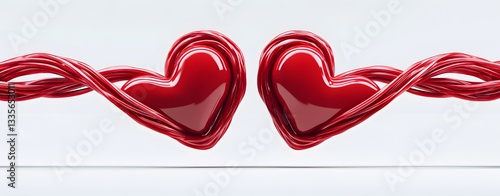 Two Red Glossy Hearts Entwined With Red Ribbons