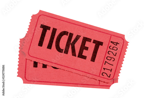 Two red movie or concert tickets isolated transparent background photo PNG file