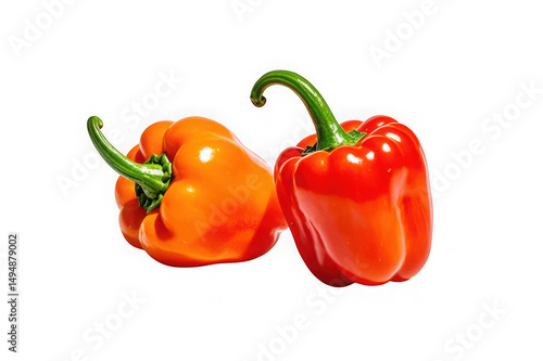 Two ripe bell peppers orange and red on black