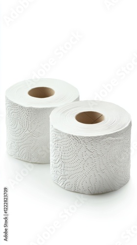 Two rolls of white paper towels with decorative patterns for cleaning and drying purposes.