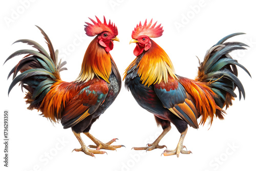 Two Roosters, Facing Each Other, cutout, PNG isolated on white or transparent background