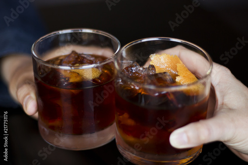Two Rye Whiskey Cocktail Drinks Toasted Together