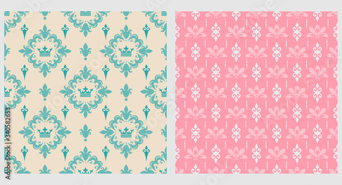 Two samples of background wallpaper for your design, vector graphics. Used colors: green, white, pink. Seamless pattern
