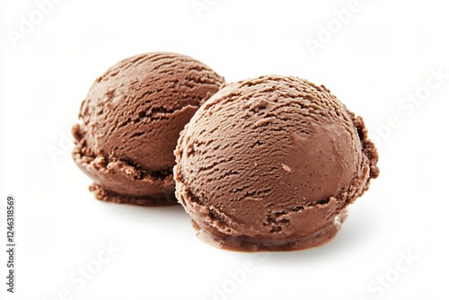 Two Scoops of Rich Chocolate Ice Cream Delight on a Clean White Background Studio Shot
