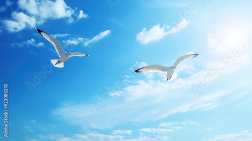 Two Seagulls Flying in a Blue Sky