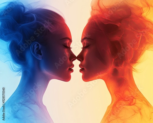 Two Silhouettes Facing Each Other with Overlapping Colors