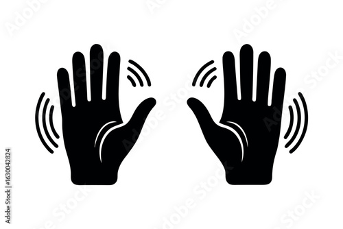 Two simple line art icons depicting a waving hand and a thumbs up gesture
