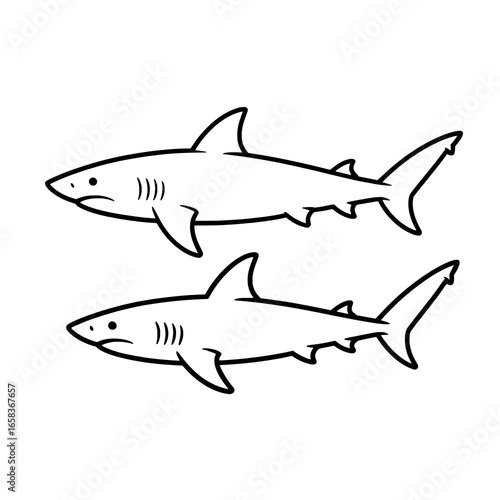 Two Simple Line Art Shark Illustrations: Vertical Stacked Design