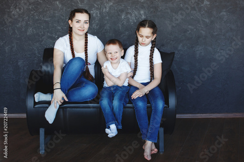Two sisters with long braids and a boy