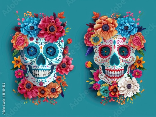 Two skulls with flowers on them