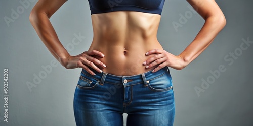 Two slender hands rest with tranquility on slender hips, exuding an aura of poise and confidence, a subtle