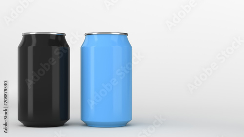Two small black and blue aluminum soda cans mockup on white background