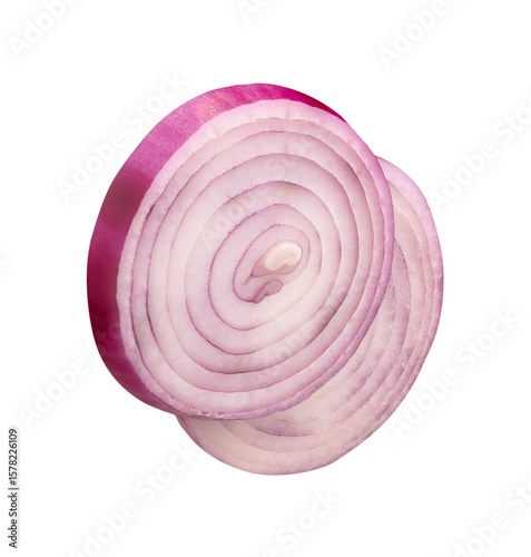 Two Spanish onion or red onion slices in stack isolated with clipping path in png file format