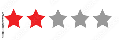 Two Star Rating Vector – Red and Gray Five-Star Review Icon Representing Low or Below-Average Feedback