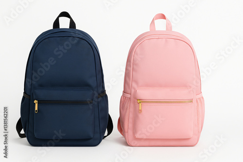 Two stylish backpacks in navy and pink, ideal for boys, girls, and all genders, displayed side by side on a clean white background.
