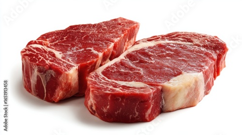 Two succulent cuts of raw beef steak ideal for grilling, showcasing marbling and freshness for gourmet dishes.
