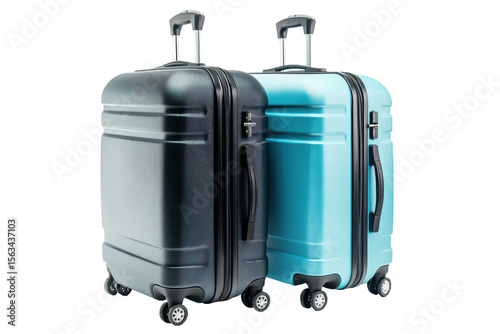 Two Suitcases Ready for Travel Dark Blue and Light Blue Luggage Vacation Trip, isolated on a transparent background