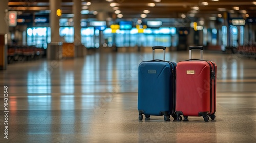 Two suitcases sit forlornly in an empty airport terminal, the echoes of departing travelers long since faded. The suitcases, a beacon of anticipation and adventure