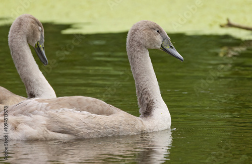 two swan siblings, one swan sleeps, young mute swans, cute waterbird, young mute swan in the sunlight, young swan on the pond, young grey swan, elegant water bird in the pond