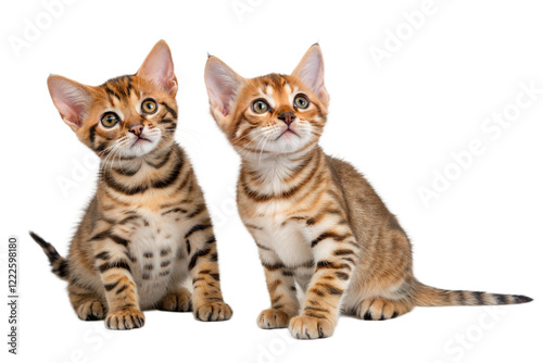 Two Toyger Kittens Sitting on white background. Toyger kittens isolated on white.
