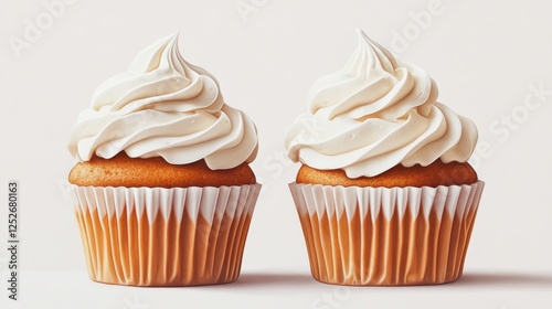 Two vanilla cupcakes, white background, sweet treat, dessert photography