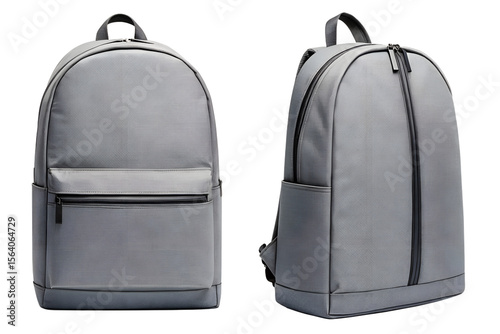 Two Views of a Stylish Grey Backpack with Multiple Compartments