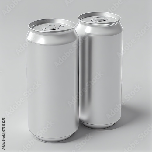 Two white aluminum beverage cans on a light background, Mockup. Generative AI