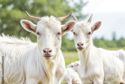 Two White Goats Looking at the Camera