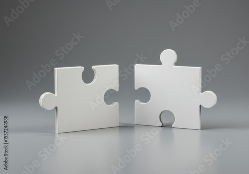 Two white puzzle pieces on grey background symbolizing connection and teamwork