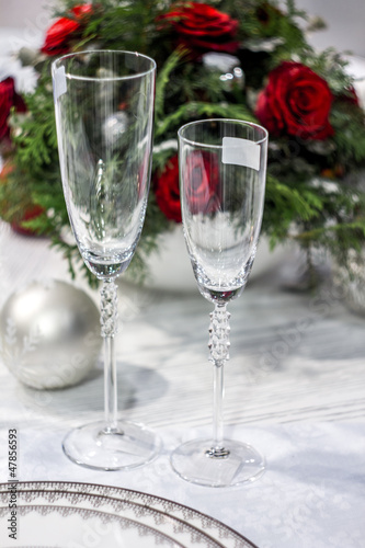 Two wineglasses and bunch of roses