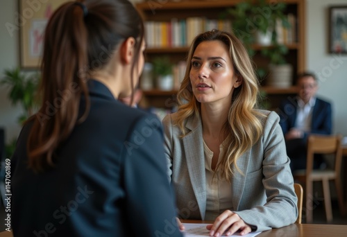 Two women having a serious conversation in a cafe.