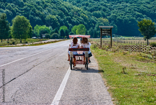 Two-seater cycle-carriages, driven by two woman