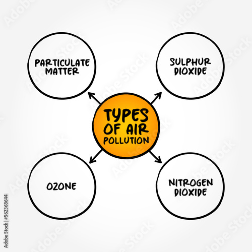 Types of Air Pollution (contamination of air due to the presence of substances in the atmosphere that are harmful to the health) mind map concept background