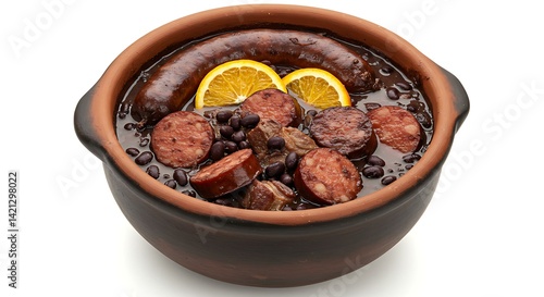 Typical Brazilian food feijoada white background. Brazilian food