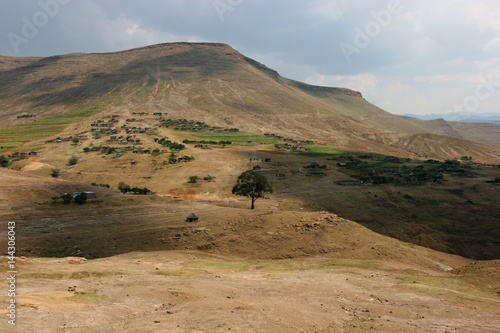 Typical local village in rural between Makunyapane and Linakeng, Lesotho