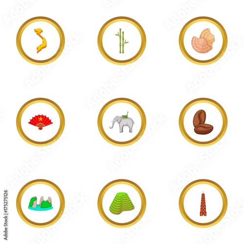 Typical Vietnam icons set, cartoon style