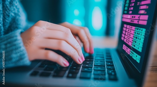 Typing on laptop home office digital work modern environment close-up view productivity and technology insights