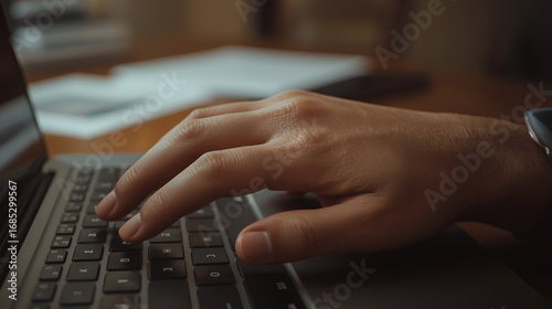 Typing on Laptop Keyboard with Focus on Hand and Fingers