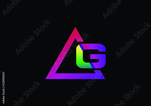 Typographic alphabet G in a triangle with vibrant colors