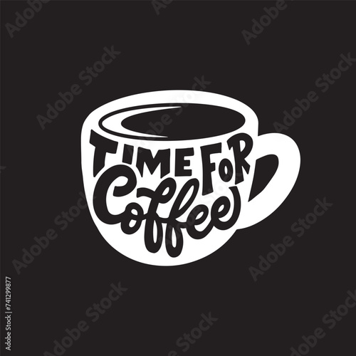 Typography design on coffee mug silhouette. Hand lettering time for coffee.