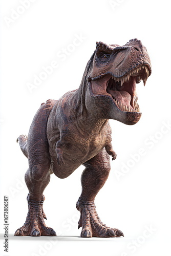 Tyrannosaurus Rex Roaring on White Background in Surreal Artistic Style