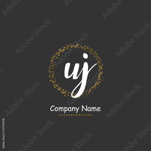 U J UJ Initial handwriting and signature logo design with circle. Beautiful design handwritten logo for fashion, team, wedding, luxury logo.