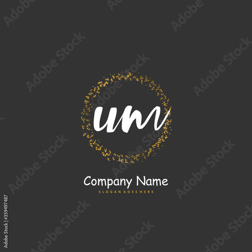 U M UM Initial handwriting and signature logo design with circle. Beautiful design handwritten logo for fashion, team, wedding, luxury logo.