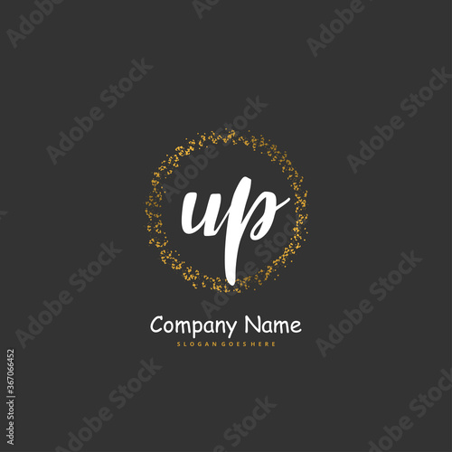 U P UP Initial handwriting and signature logo design with circle. Beautiful design handwritten logo for fashion, team, wedding, luxury logo.