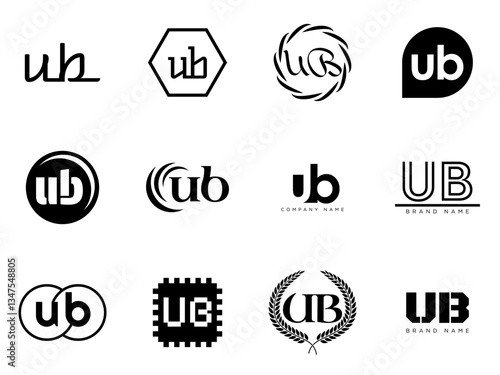 UB logo company template. Letter u and b logotype. Set different classic serif lettering and modern bold text with design elements. Initial font typography.
