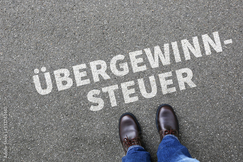 Übergewinnsteuer Symbolbild Gesetz zu Zuffalsgewinn der Bundesregierung als Business Konzept mit Geschäftsmann