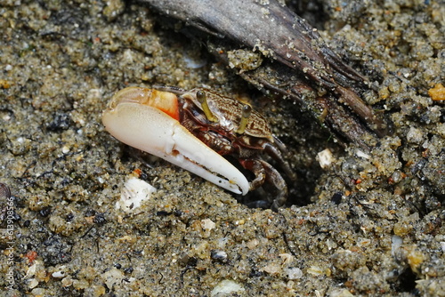 Uca arcuata, also known as the Fiddle Violinist Crab or Red-Jointed Fiddler Crab, is a species of fiddler ab|弧边招潮蟹|招潮蟹