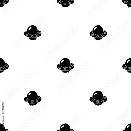 Ufo and aliens Seamless pattern. Cute Doodles space ships sketch. Hand drawn Cartoon Vector illustration